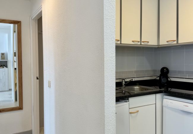 Dans le complexe Rocamaura, cet appartement d'une chambre est disponible à la location pour les vacances, avec un lit superposé double et un lit simple pouvant accueillir jusqu'à 3 personnes. Il comprend un salon-salle à manger avec un canapé et une télévision, une petite cuisine indépendante et une salle de bains avec douche.