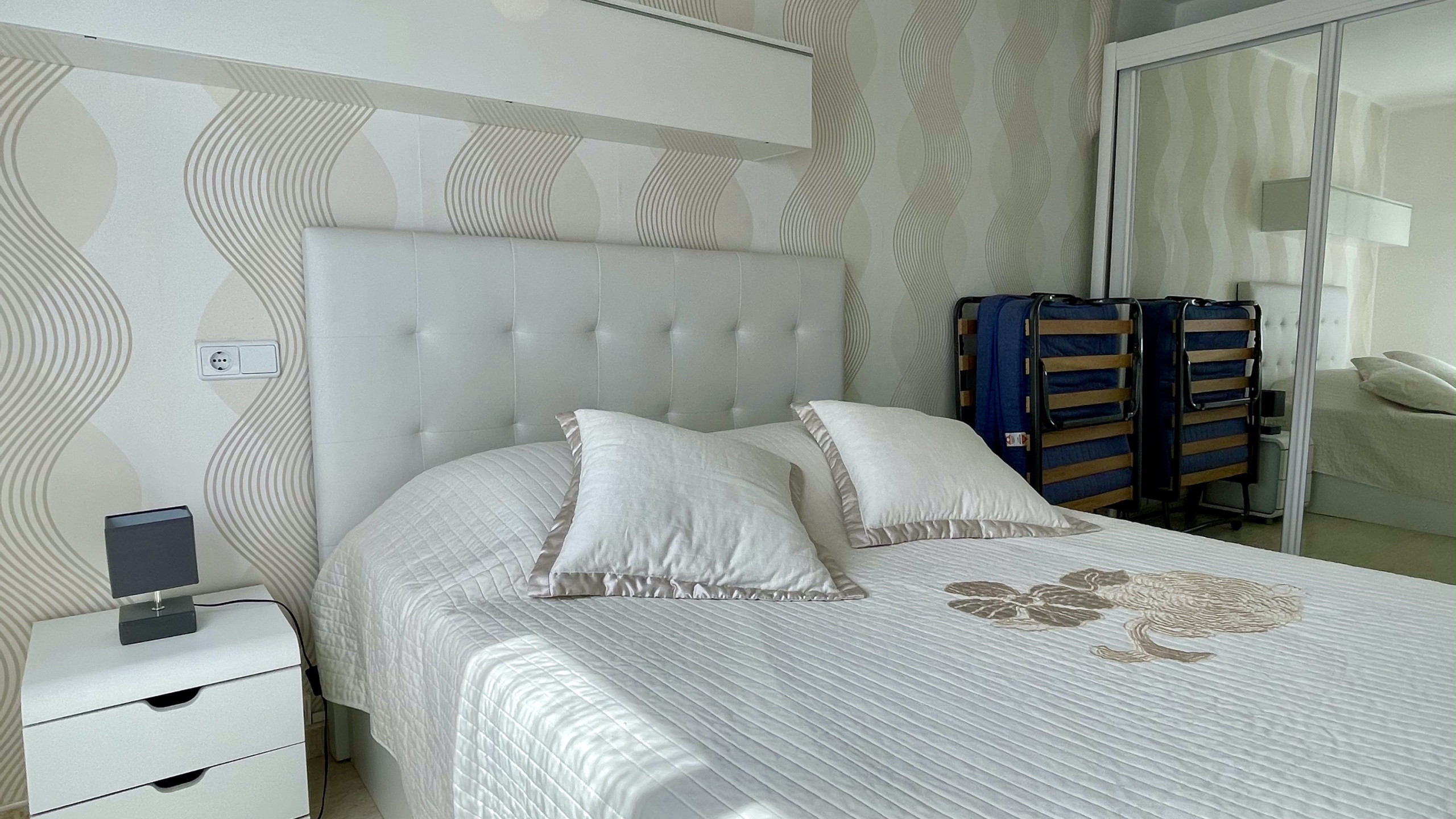 L'appartement dispose de deux chambres équipées d'un lit double, d'un lit king size et d'un canapé-lit, garantissant un repos confortable pour tous les invités. Il comprend une salle de bain complète avec douche, idéale pour les familles recherchant la praticité.