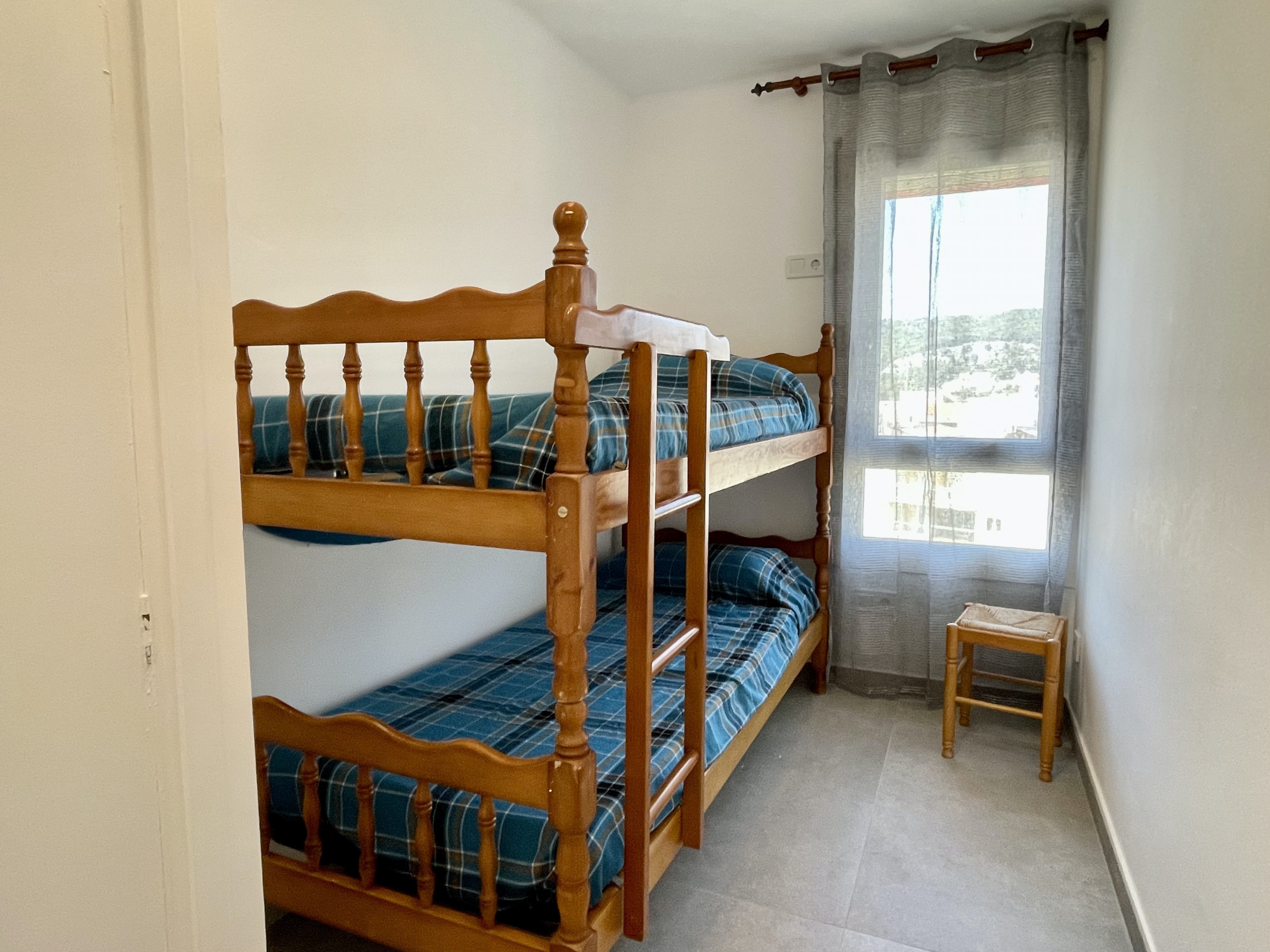 Dans le complexe Rocamaura, cet appartement d'une chambre est disponible à la location pour les vacances, avec un lit superposé double et un lit simple pouvant accueillir jusqu'à 3 personnes. Il comprend un salon-salle à manger avec un canapé et une télévision, une petite cuisine indépendante et une salle de bains avec douche.