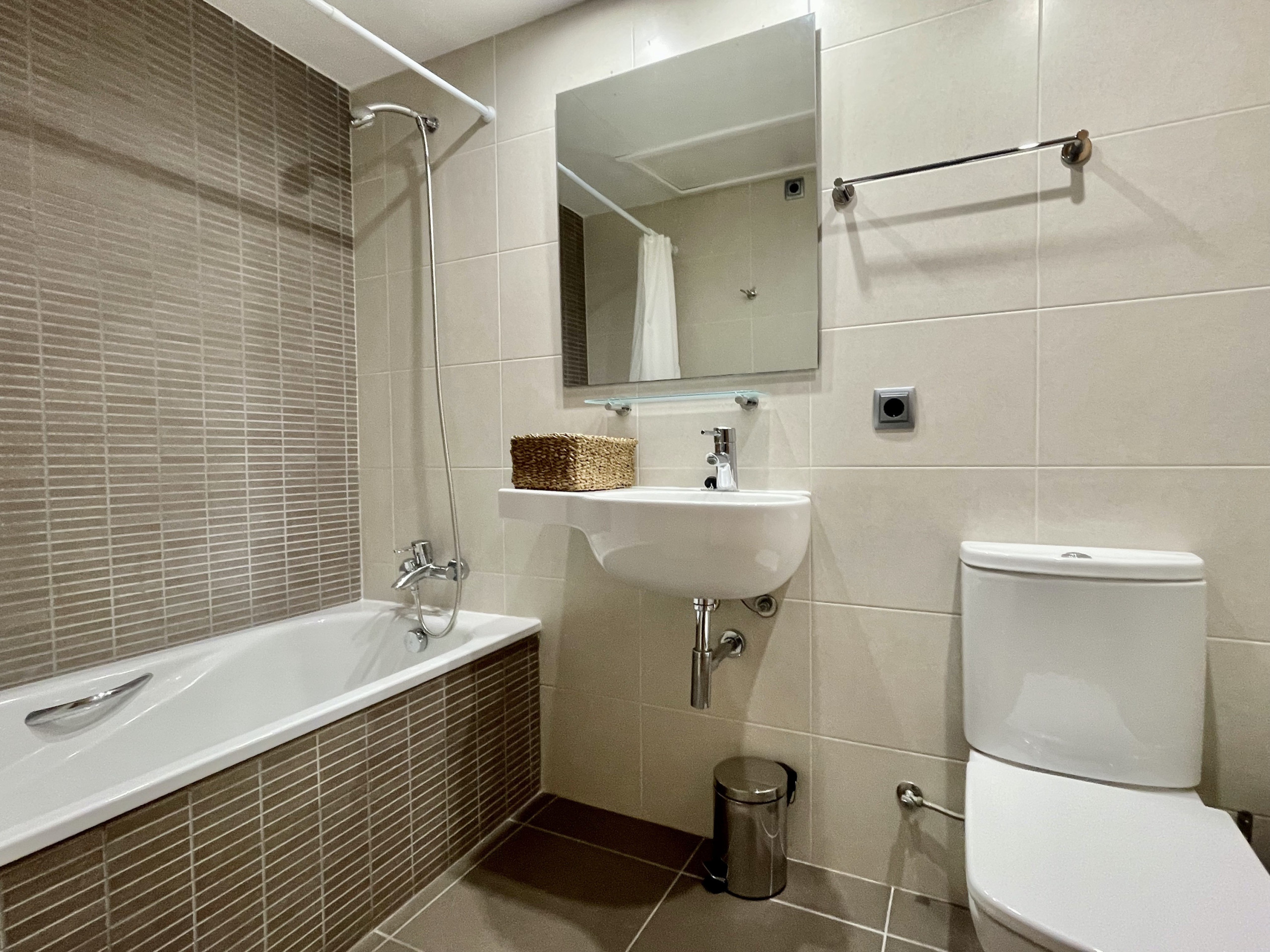 Le logement dispose d'un parking couvert dans le même immeuble pour plus de confort. Il dispose également de mobilier de jardin et d'une piscine commune parfaite pour profiter du beau temps.