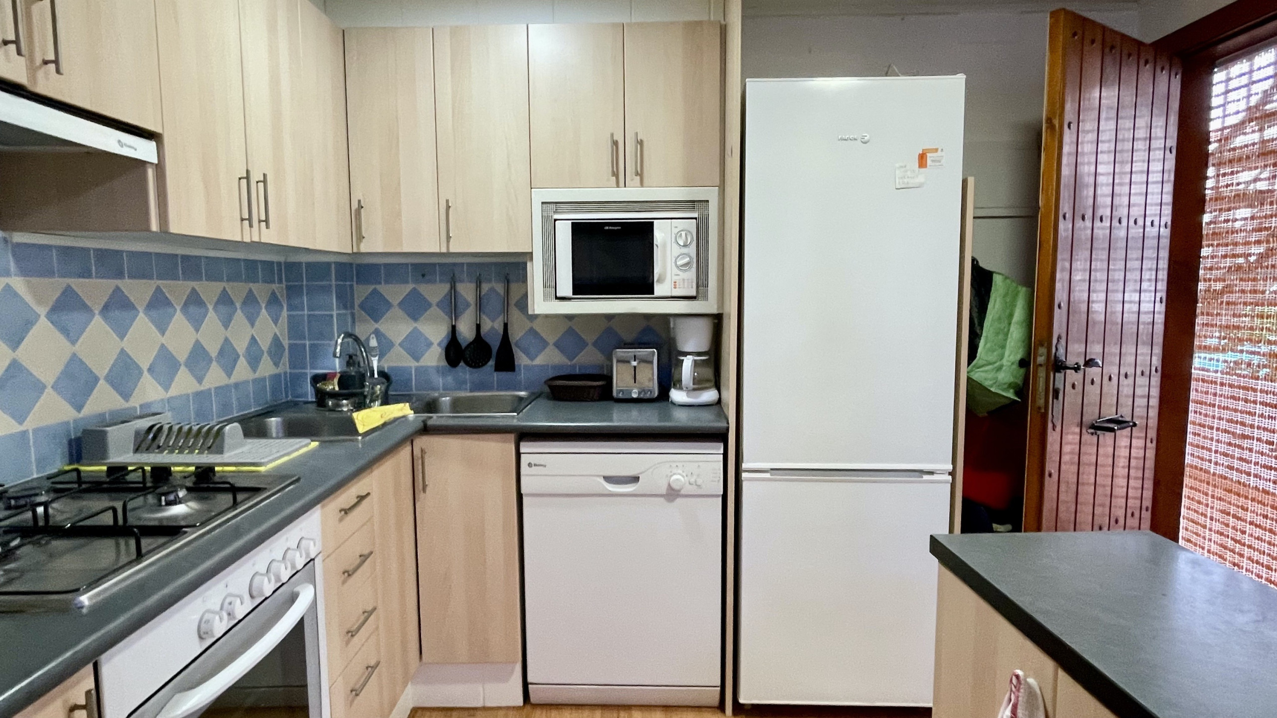 L'appartement, situé au rez-de-chaussée, offre un accès direct à la rue pour plus de commodité. De plus, il dispose d'une parcelle clôturée qui garantit l'intimité, une terrasse pour profiter de l'air frais, un lave-linge pour plus de commodité, un fer à repasser pour maintenir les vêtements impeccables, la climatisation dans le salon et certaines chambres pour assurer une température agréable toute l'année, une piscine communautaire pour se rafraîchir lors des journées chaudes, et un téléviseur pour un divertissement supplémentaire pendant votre séjour.