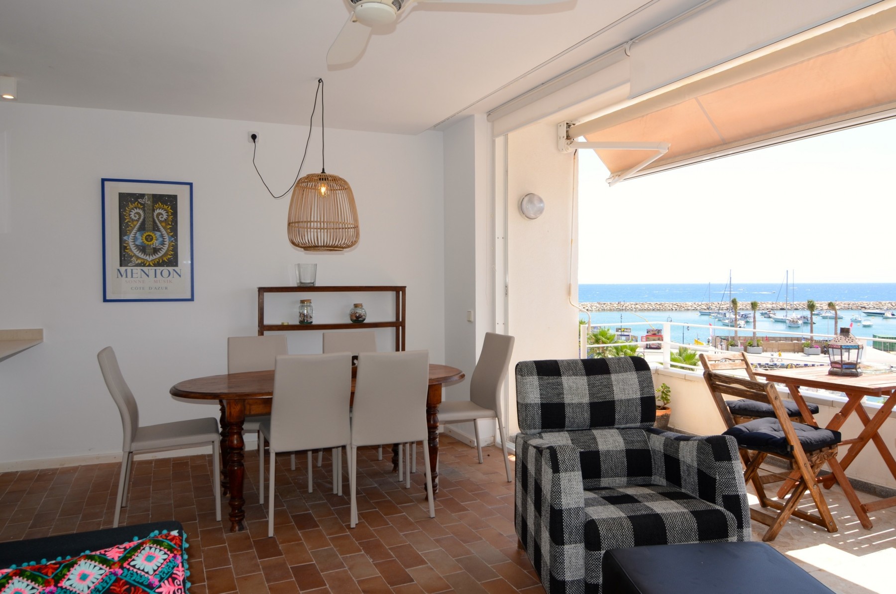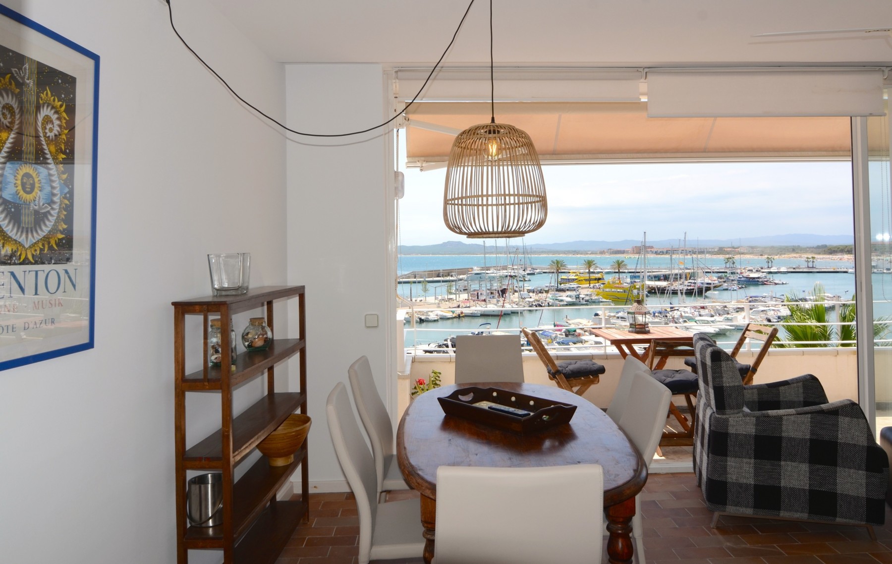 Le salon-salle à manger dispose d'un canapé-lit double et d'un ventilateur pour assurer une atmosphère agréable. Depuis la terrasse, vous pouvez apprécier une vue magnifique sur le port de l'Estartit et la mer, créant un espace parfait pour se détendre et profiter de la brise marine.