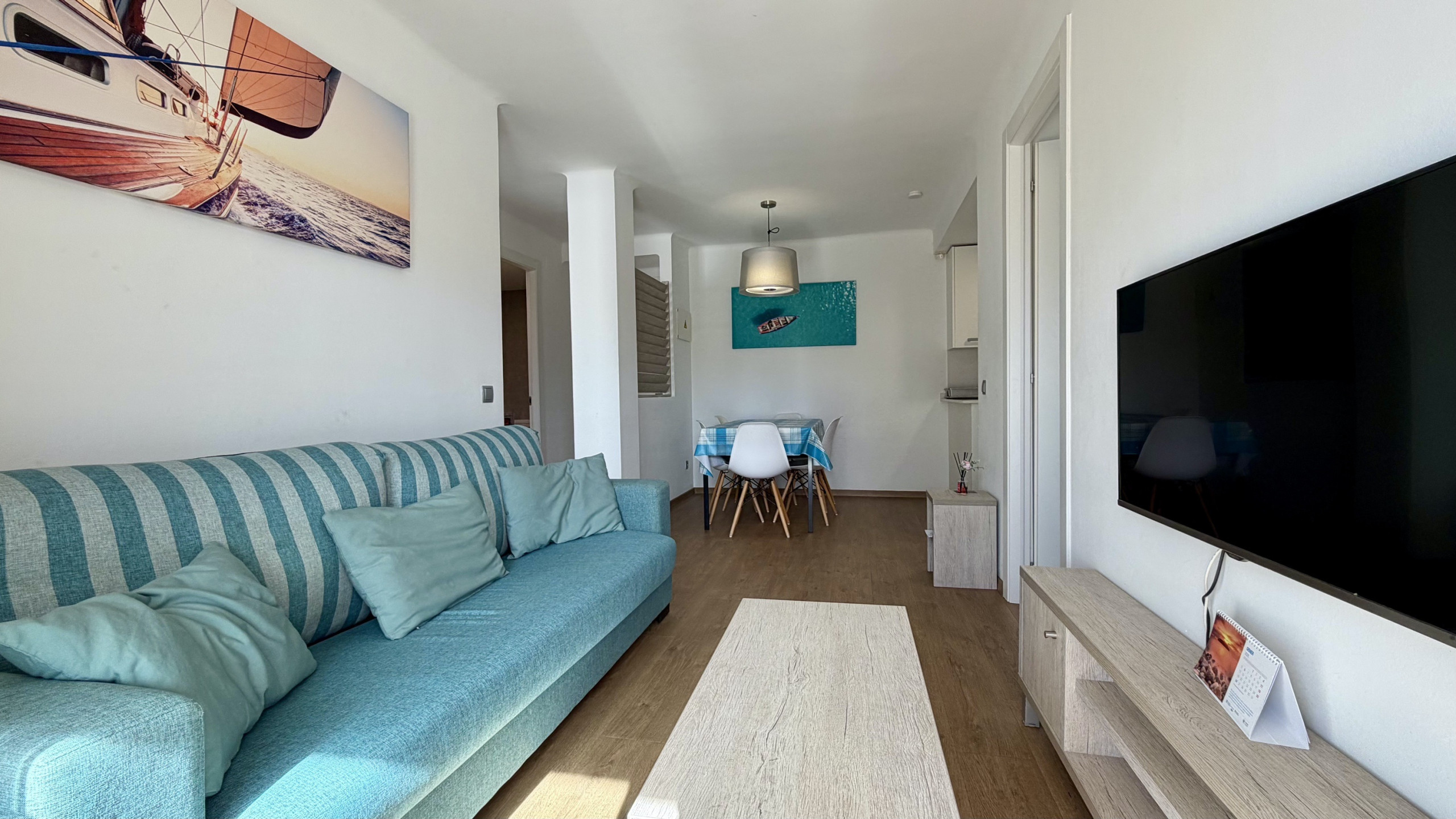 Dans le complexe Rocamaura, cet appartement d'une chambre est disponible à la location pour les vacances, avec un lit superposé double et un lit simple pouvant accueillir jusqu'à 3 personnes. Il comprend un salon-salle à manger avec un canapé et une télévision, une petite cuisine indépendante et une salle de bains avec douche.