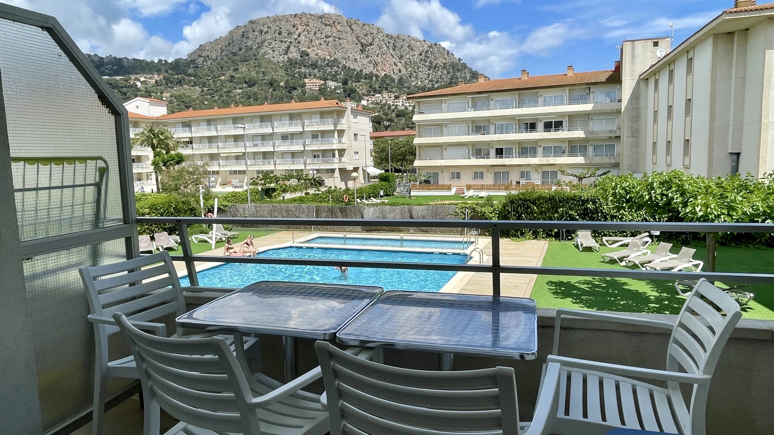 L'appartement dispose d'une grande terrasse avec une vue imprenable sur l'ensemble du complexe Rocamaura, avec la piscine à vos pieds et les îles Medes en arrière-plan.