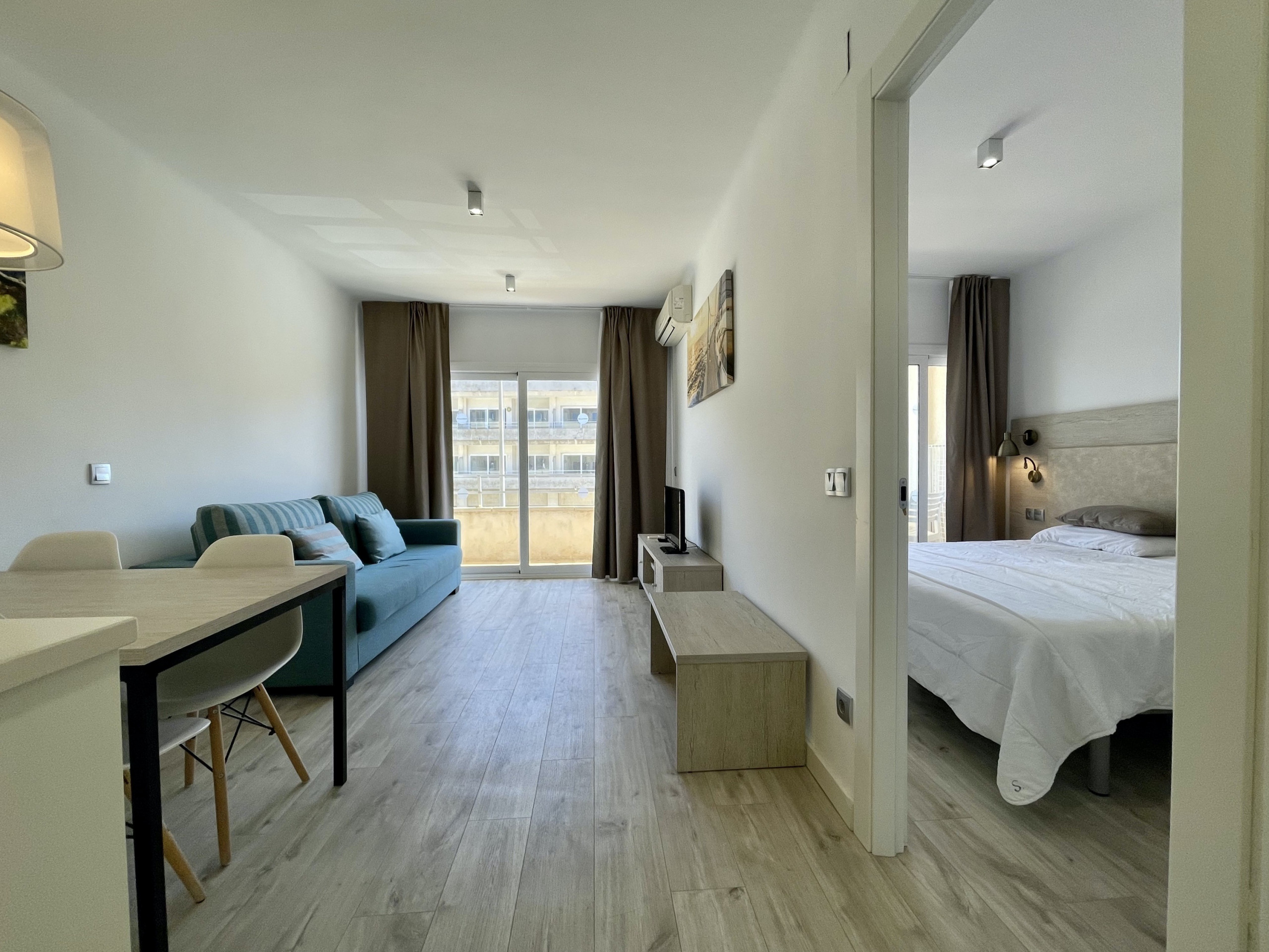 Dans le complexe Rocamaura, cet appartement d'une chambre est disponible à la location pour les vacances, avec un lit superposé double et un lit simple pouvant accueillir jusqu'à 3 personnes. Il comprend un salon-salle à manger avec un canapé et une télévision, une petite cuisine indépendante et une salle de bains avec douche.