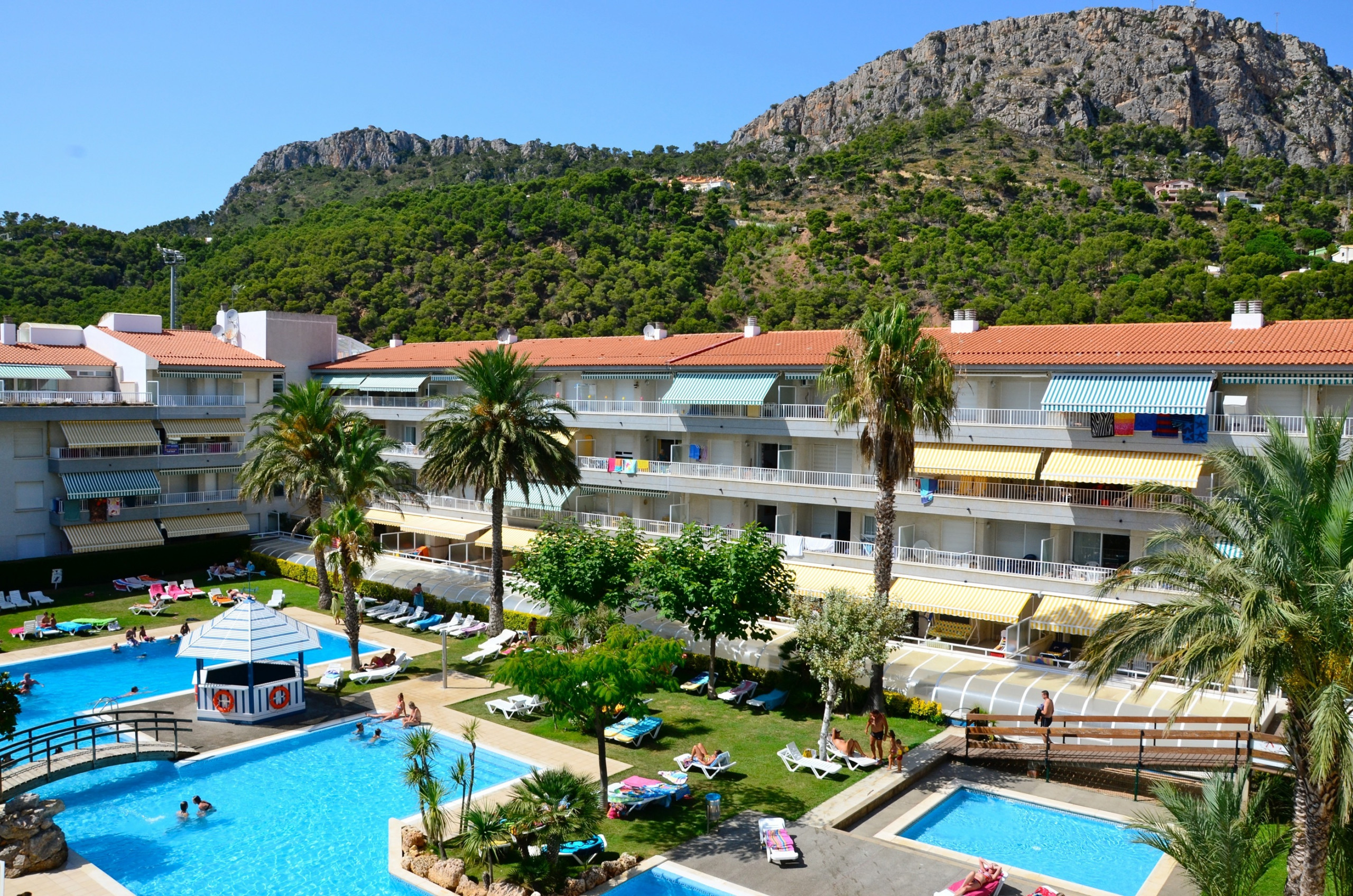 L'appartement dispose d'une grande terrasse avec une vue imprenable sur l'ensemble du complexe Rocamaura, avec la piscine à vos pieds et les îles Medes en arrière-plan.