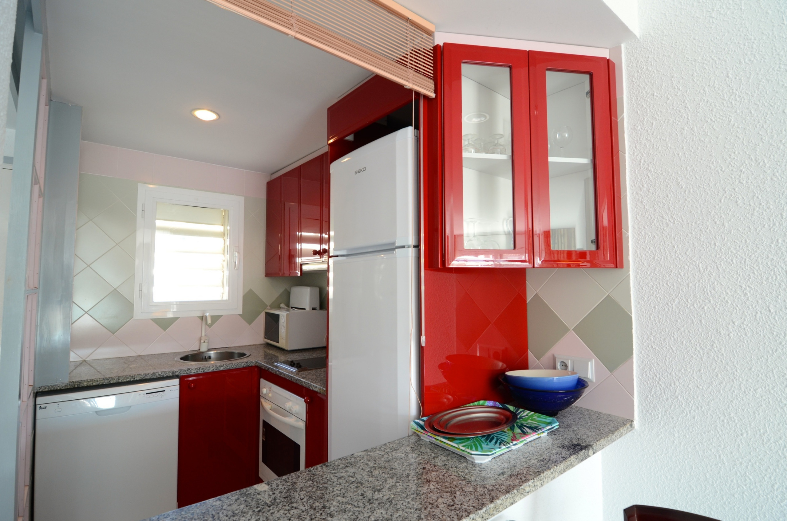 La résidence Tamarindos offre un charmant espace commun avec un jardin luxuriant et une piscine rafraîchissante, idéal pour se rafraîchir et profiter du soleil. Bien que l'appartement n'ait pas de vue directe sur la piscine, son emplacement privilégié à quelques mètres de la plage et de l'espace naturel de La Platera vous permettra de profiter pleinement de la beauté des environs.