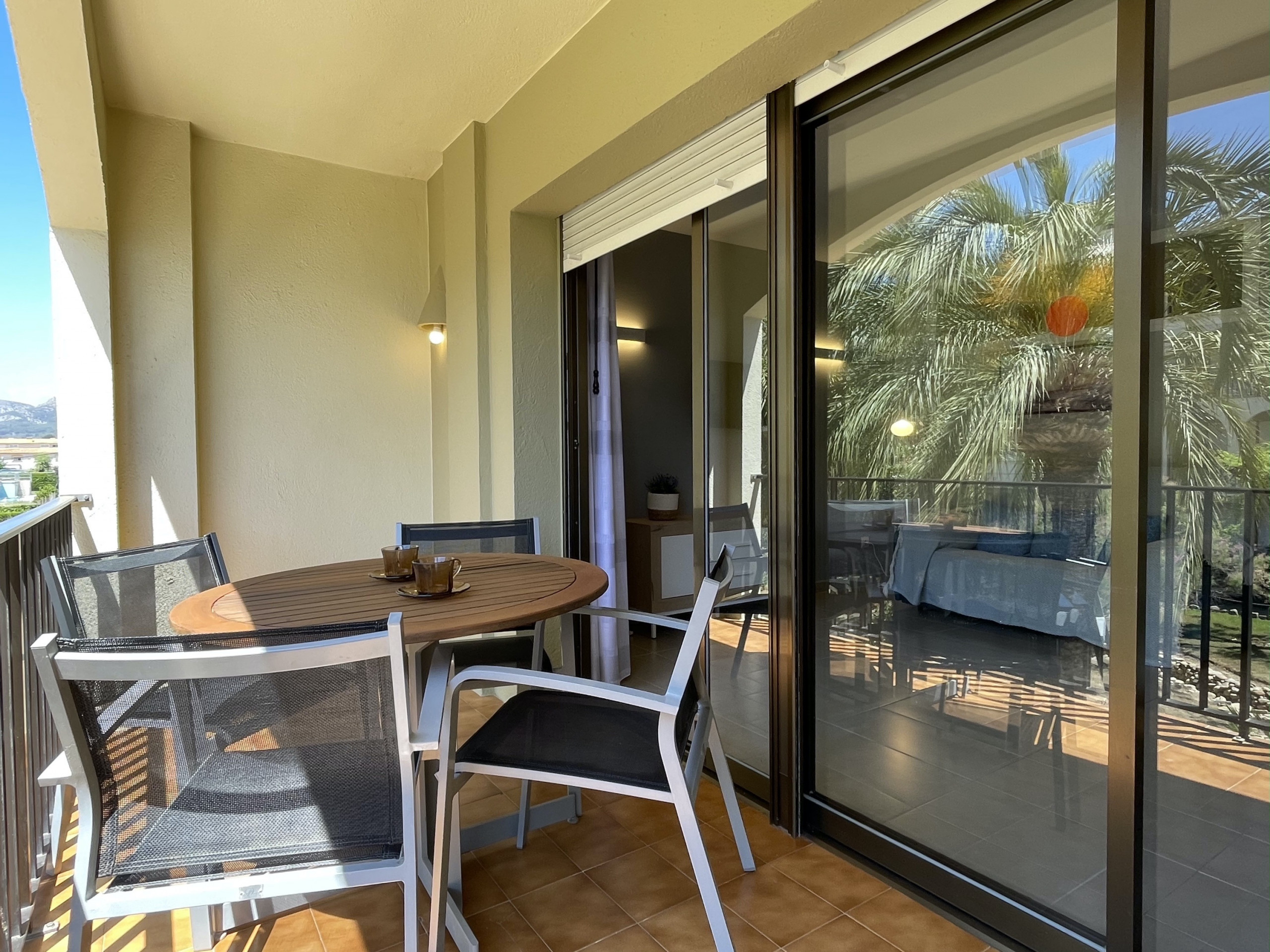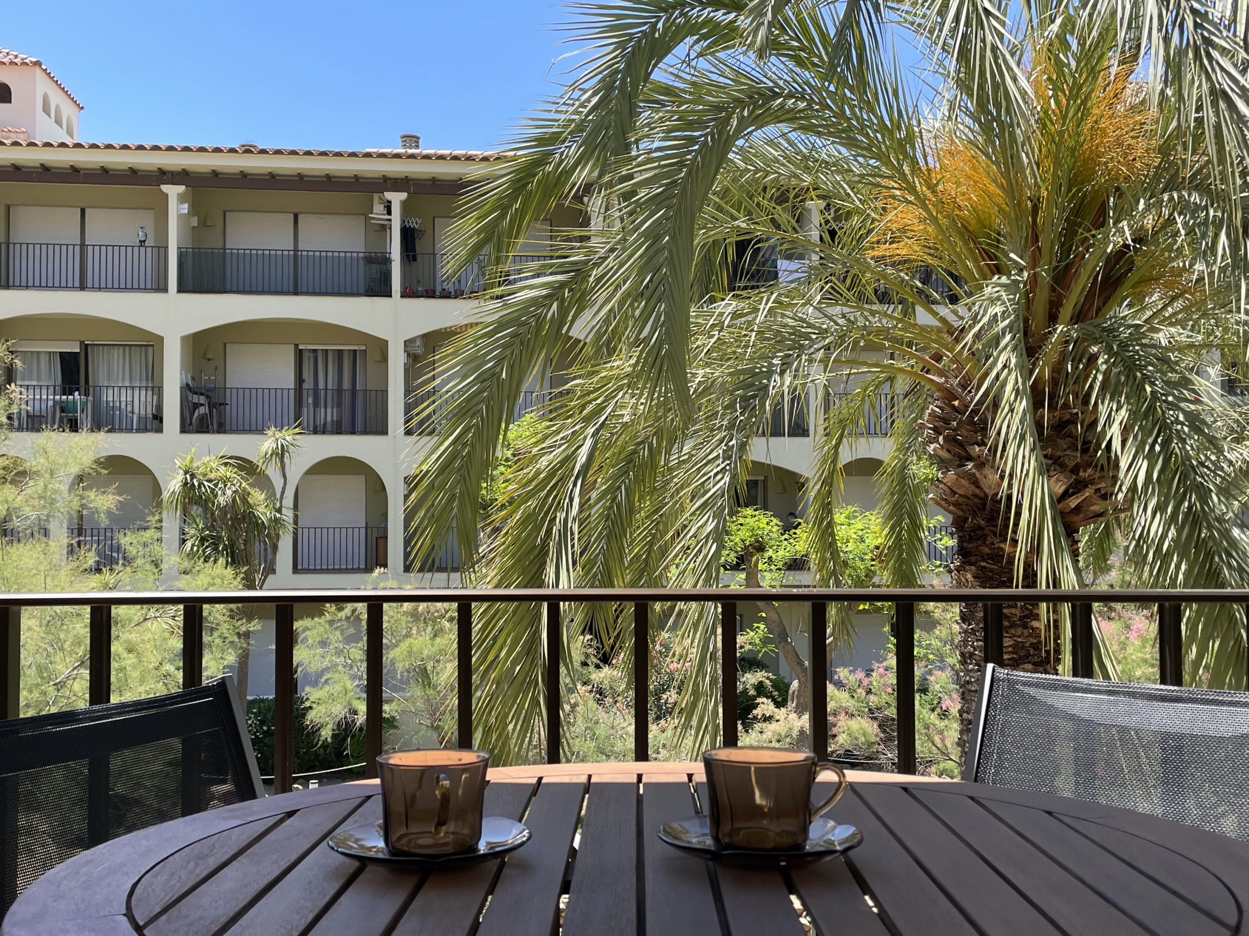 L'appartement dispose d'une grande terrasse avec une vue imprenable sur l'ensemble du complexe Rocamaura, avec la piscine à vos pieds et les îles Medes en arrière-plan.