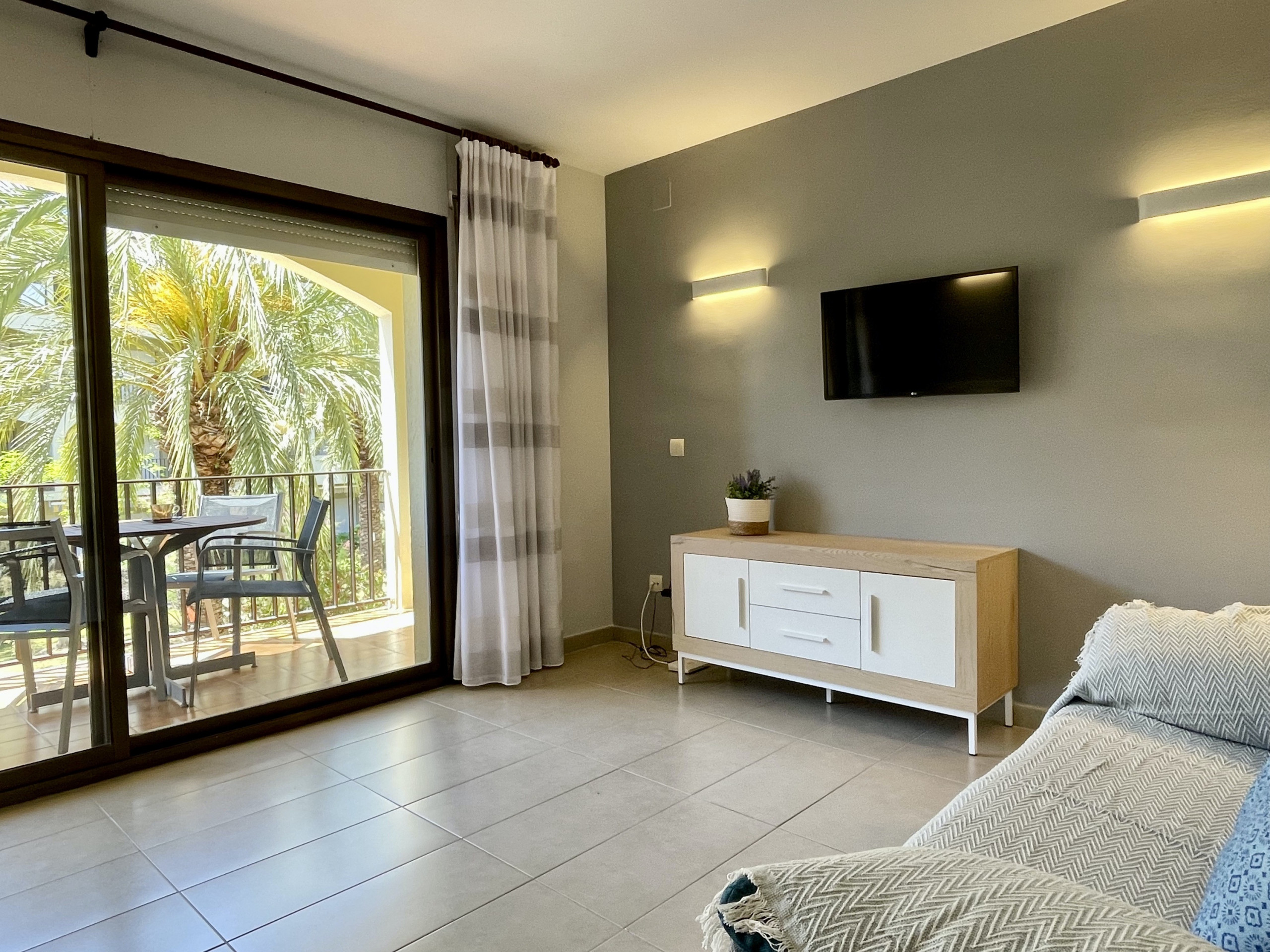 Dans le complexe Rocamaura, cet appartement d'une chambre est disponible à la location pour les vacances, avec un lit superposé double et un lit simple pouvant accueillir jusqu'à 3 personnes. Il comprend un salon-salle à manger avec un canapé et une télévision, une petite cuisine indépendante et une salle de bains avec douche.