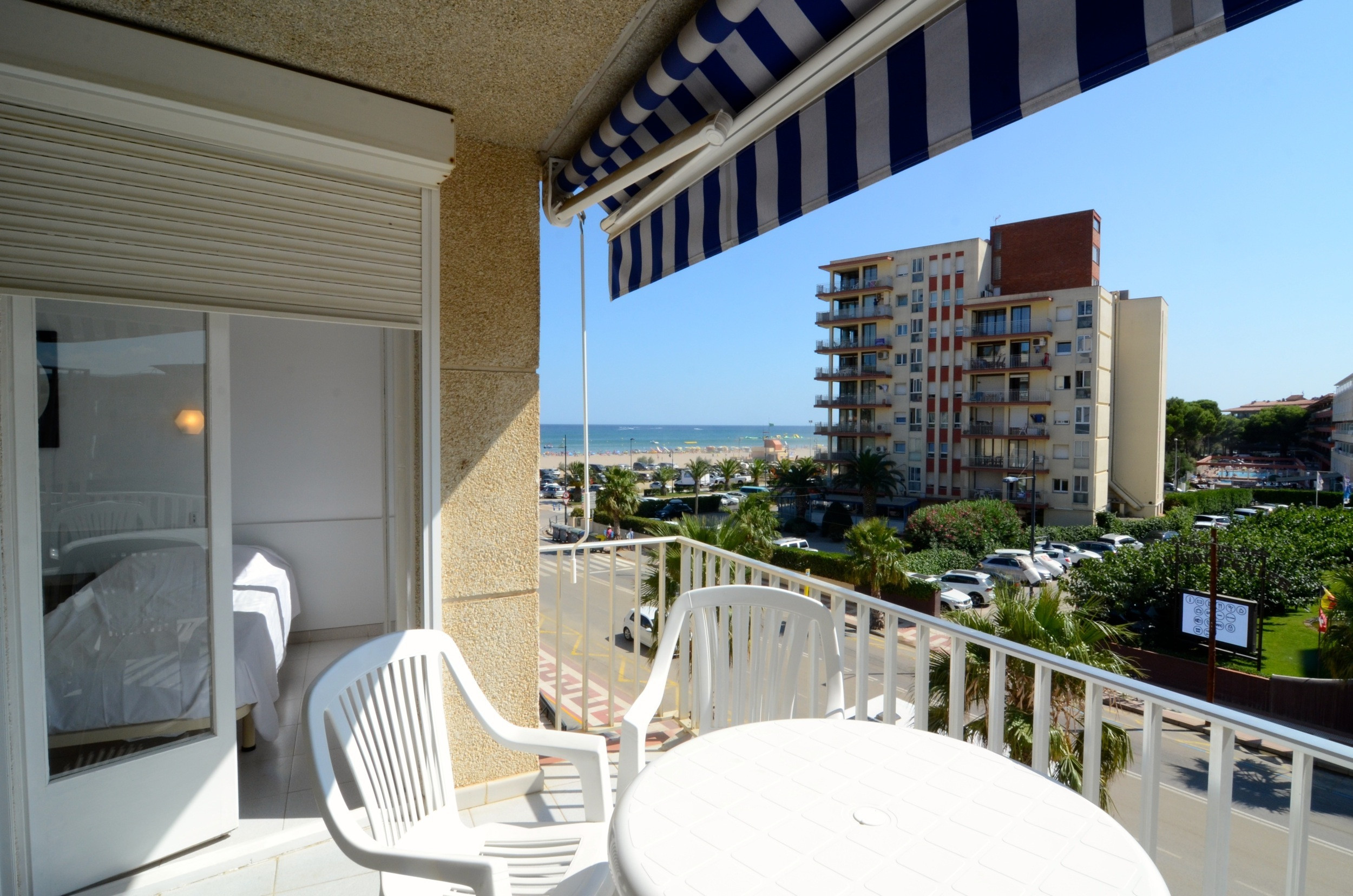 L'appartement dispose d'une grande terrasse avec une vue imprenable sur l'ensemble du complexe Rocamaura, avec la piscine à vos pieds et les îles Medes en arrière-plan.