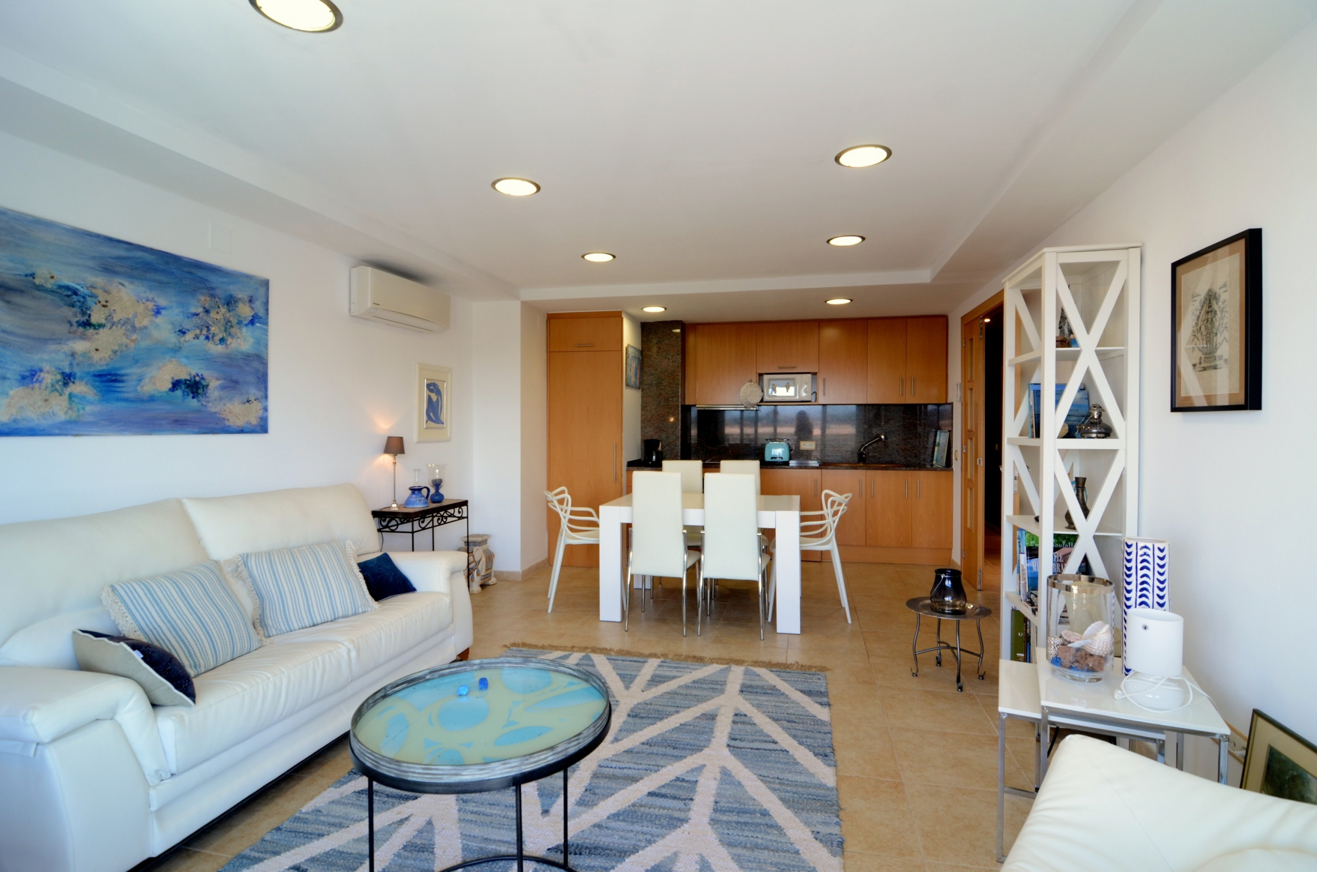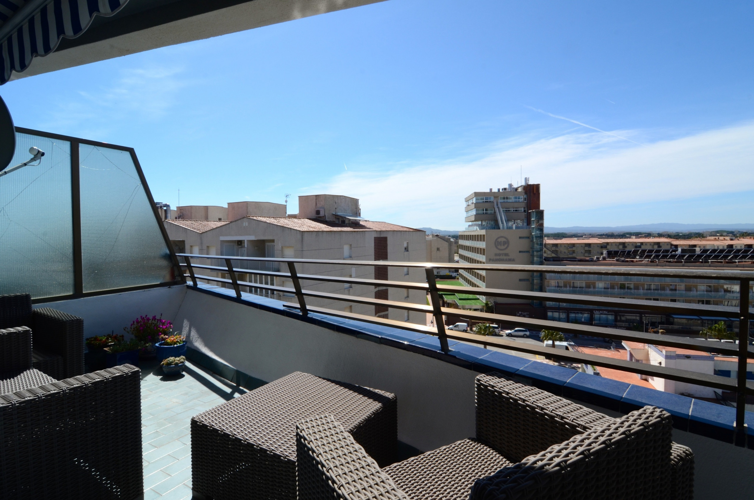 L'appartement dispose d'une grande terrasse avec une vue imprenable sur l'ensemble du complexe Rocamaura, avec la piscine à vos pieds et les îles Medes en arrière-plan.