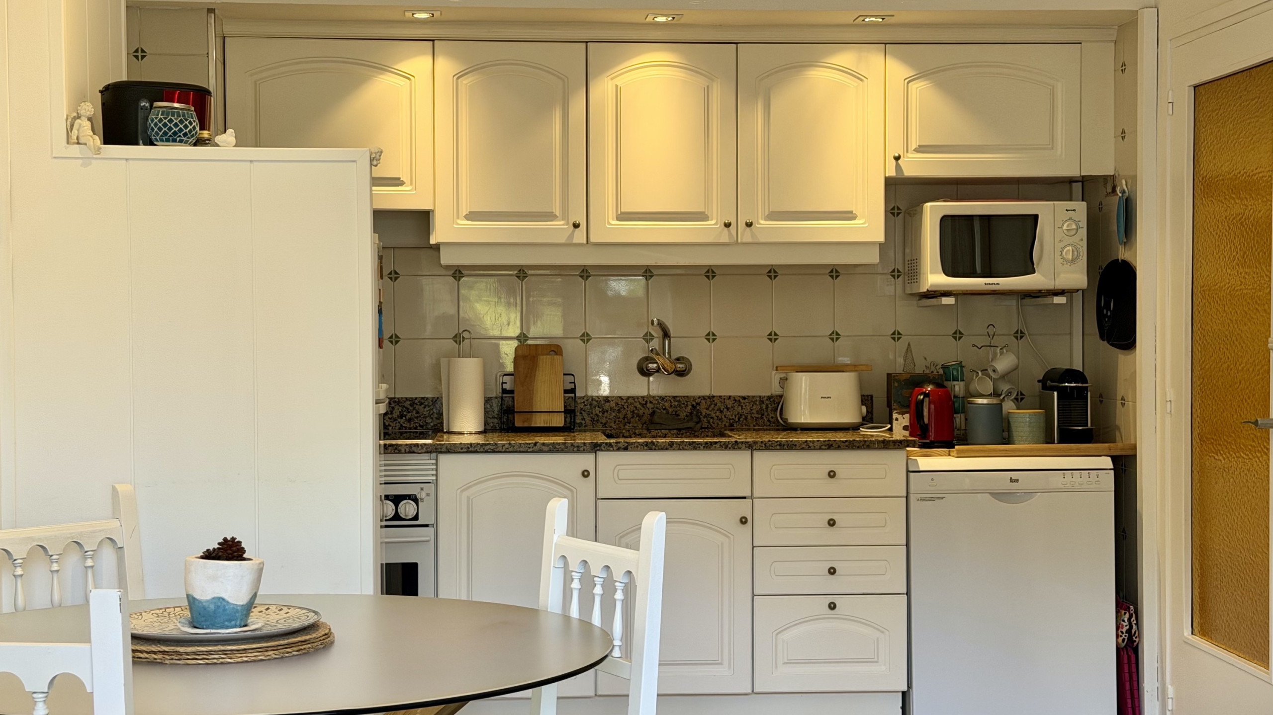 À l'intérieur, vous trouverez une chambre avec un lit double et un canapé-lit supplémentaire, offrant de la flexibilité pour différentes configurations de repos. La cuisine américaine est entièrement équipée d'appareils modernes tels que réfrigérateur, four, micro-ondes, lave-vaisselle et machine à café, vous permettant de préparer de délicieux repas.