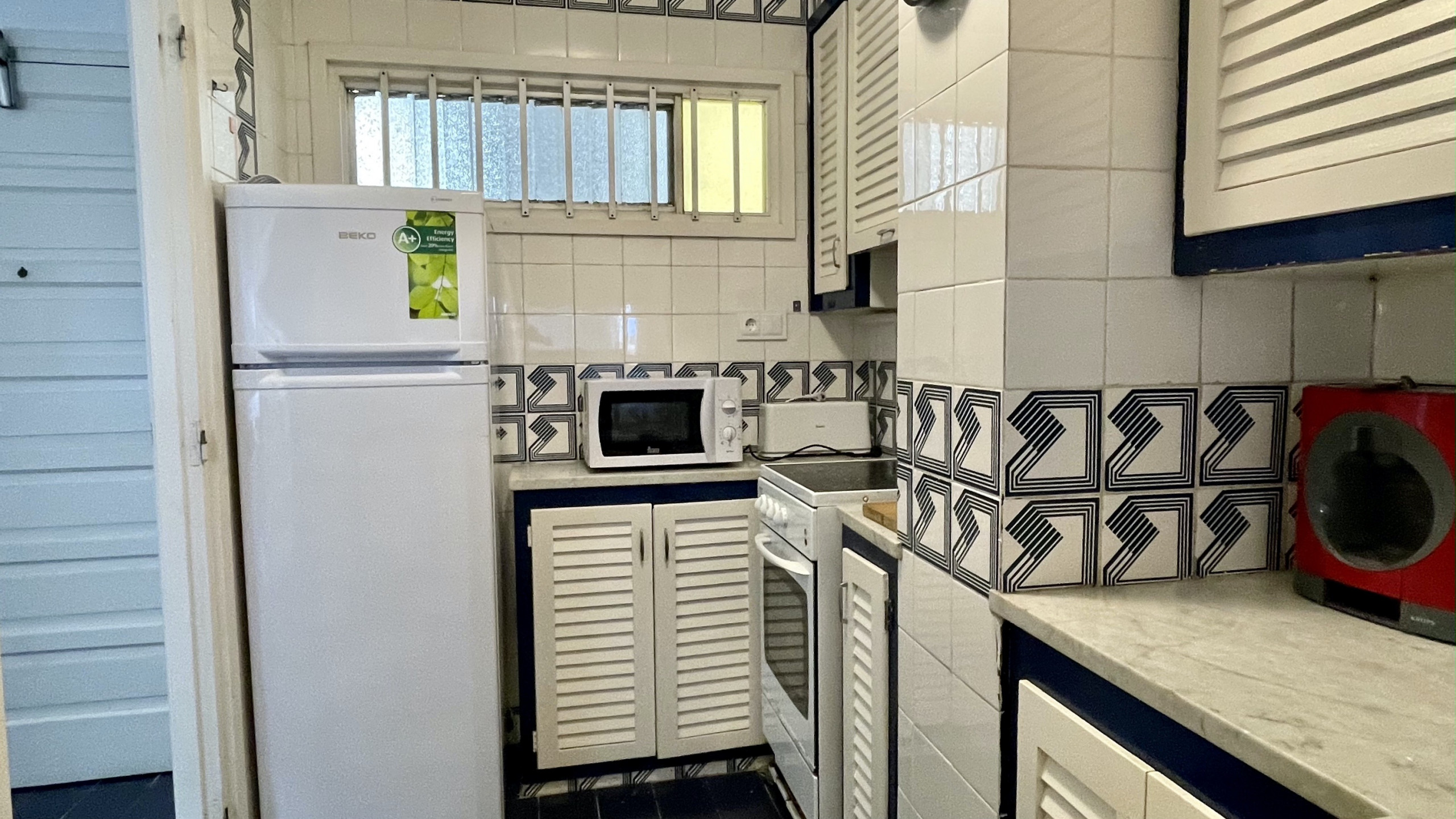 La cuisine américaine est équipée d'appareils électroménagers modernes tels que réfrigérateur, machine à laver, micro-ondes, cafetière, grille-pain et vaisselle complète. Bien qu'elle ne dispose pas de climatisation, vous pourrez profiter d'une terrasse et d'un jardin extérieur pour des moments de détente.