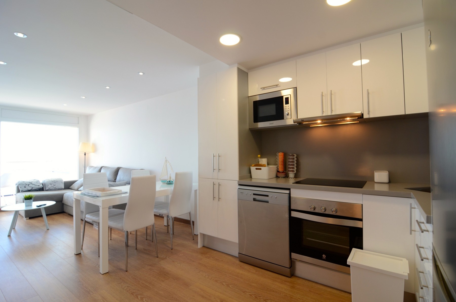 La cuisine américaine est entièrement équipée d'électroménagers de dernière génération, incluant un réfrigérateur, un lave-linge, un four, un micro-ondes, une cafetière, un grille-pain, une bouilloire, un presse-agrumes et une large variété d'ustensiles de cuisine. Elle dispose d'une plaque à induction pour une cuisine moderne et pratique.