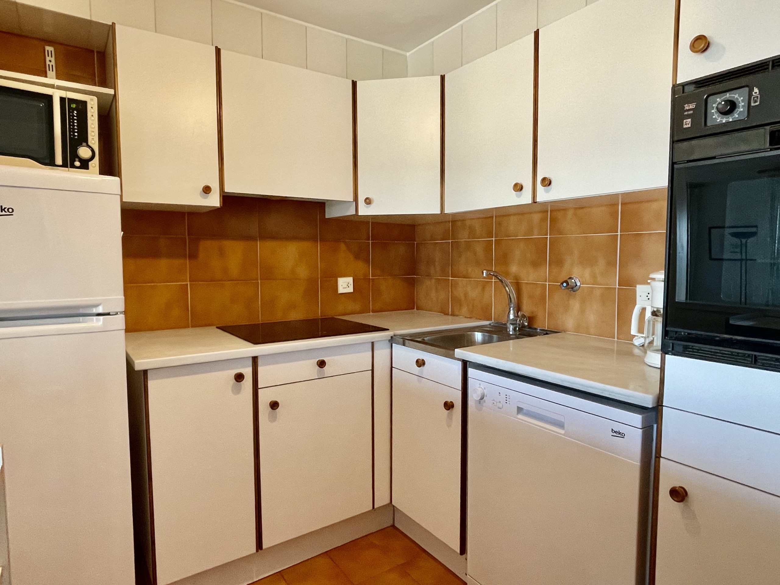 La cuisine américaine est entièrement équipée avec des appareils modernes tels qu'un réfrigérateur, un lave-linge, un lave-vaisselle, un four, un four micro-ondes, un grille-pain et une machine à café. Il comprend également des ustensiles complets pour que vous puissiez préparer vos repas facilement. En outre, il dispose d'une terrasse et de mobilier d'extérieur pour profiter de moments en plein air.