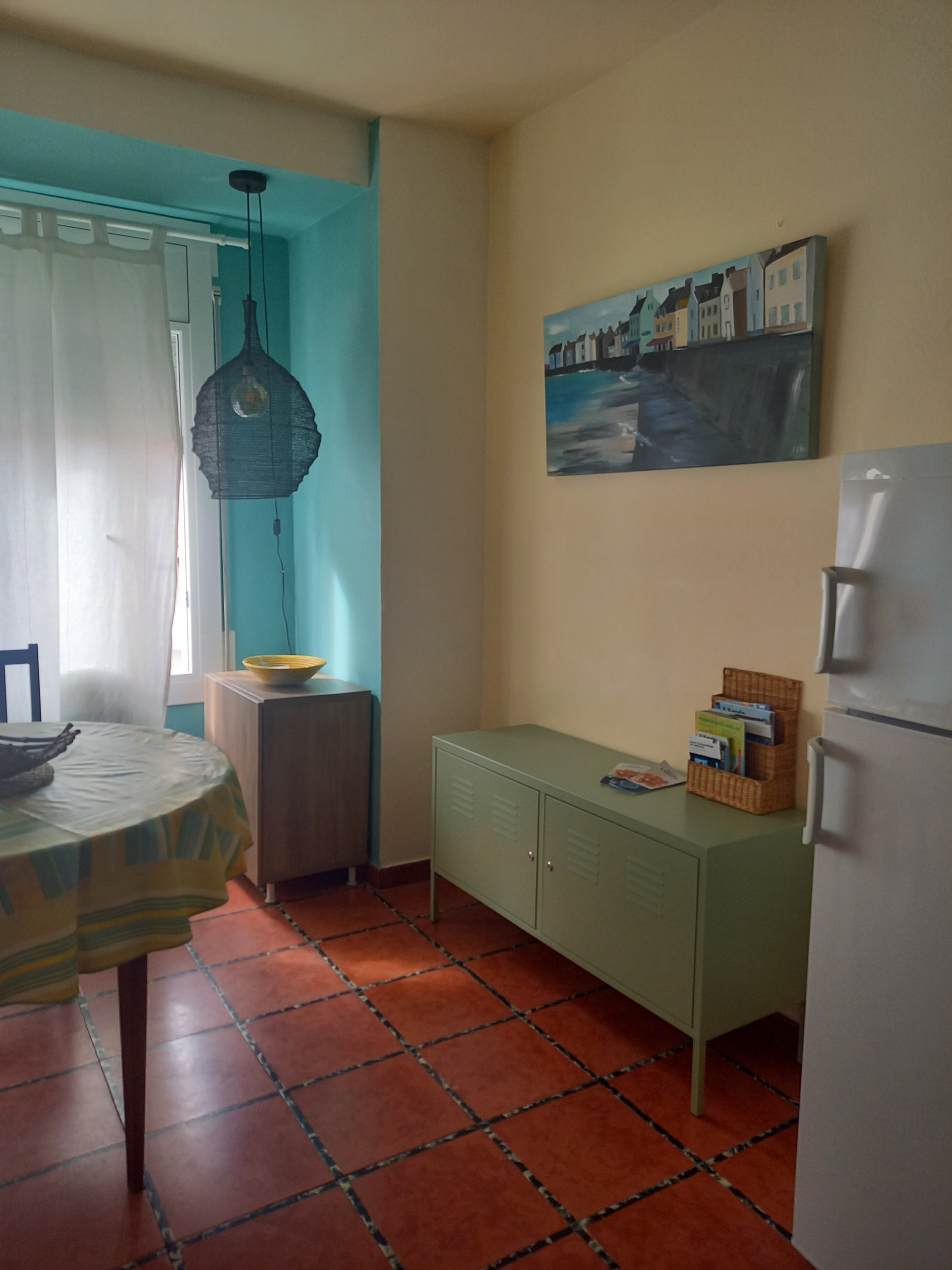 La cuisine américaine est entièrement équipée d'appareils électroménagers modernes tels que réfrigérateur, machine à laver, micro-ondes, cafetière, grille-pain et vaisselle complète. Idéale pour préparer des repas et des petits-déjeuners pendant votre séjour. De plus, elle dispose d'une connexion WiFi et d'une télévision pour vous divertir.