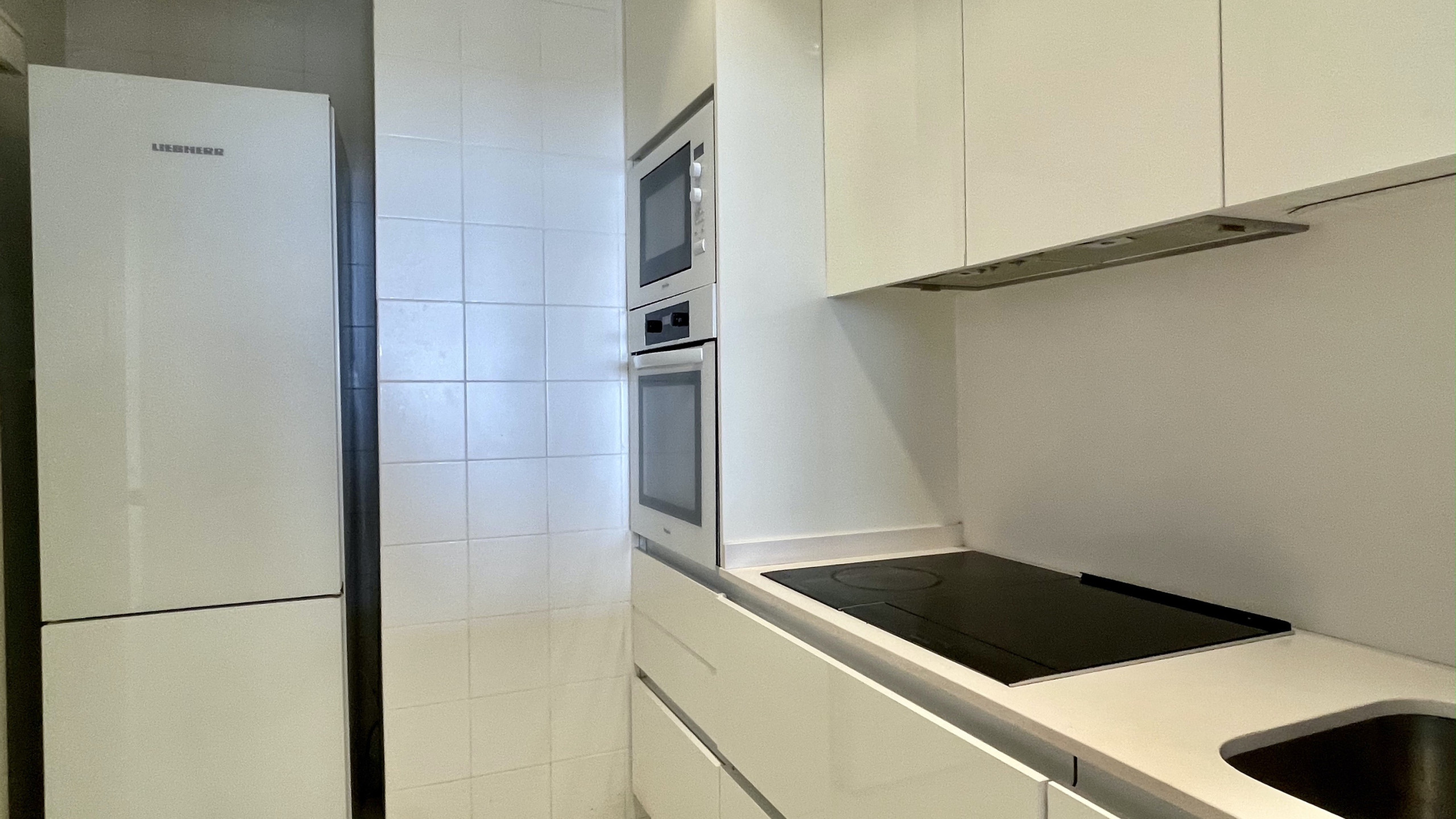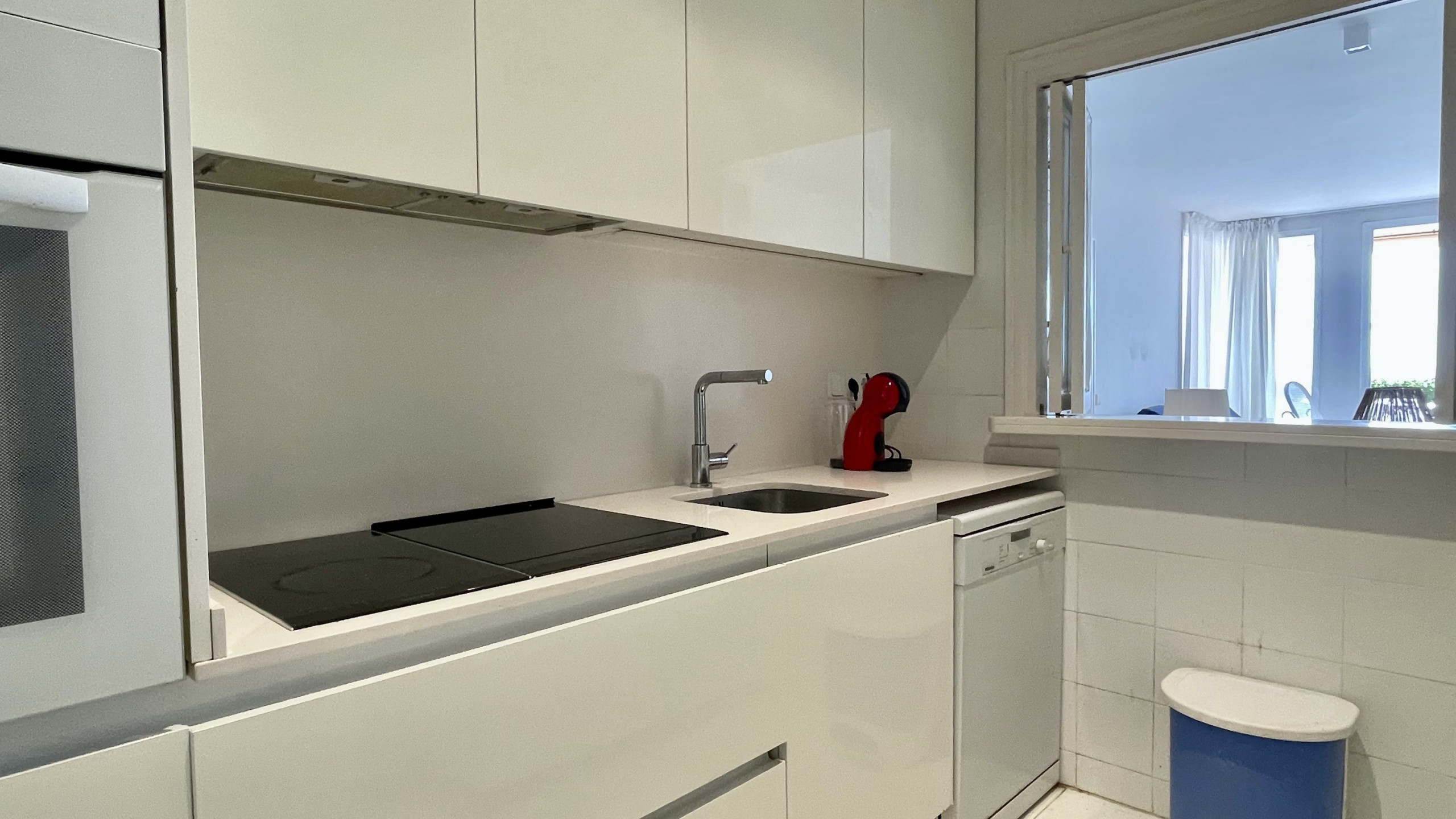 La cuisine américaine, avec une plaque vitrocéramique, est équipée d'un réfrigérateur, d'un micro-ondes, d'un four, d'un congélateur, d'une machine à laver, d'un lave-vaisselle, de vaisselle, de couverts, d'ustensiles de cuisine et d'une cafetière.