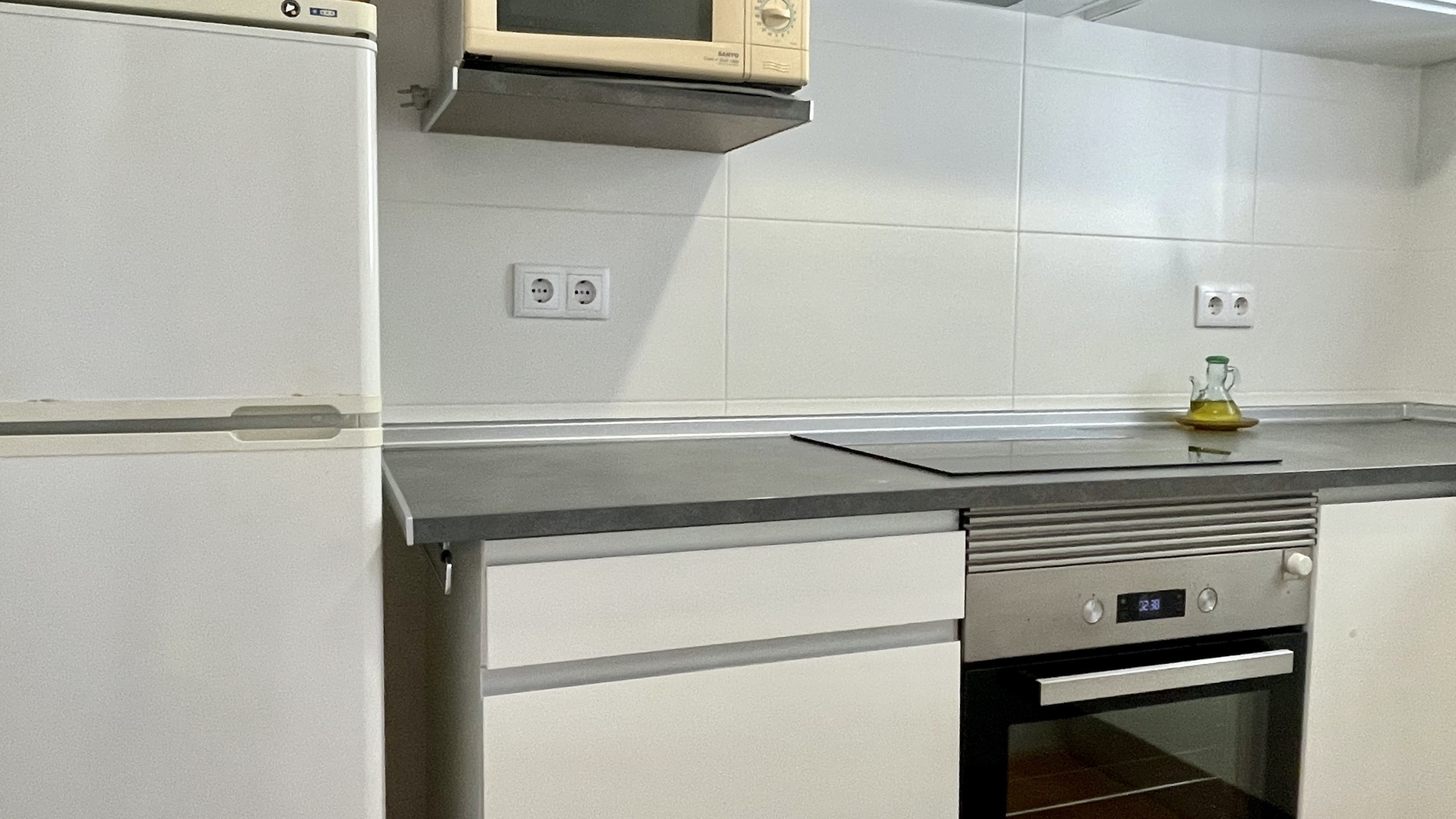 La cuisine américaine, à vitrocéramique, est équipée avec réfrigérateur, micro-ondes, lave-linge, vaisselle/couvert, ustensiles/cuisine, cafetière et grille pain.