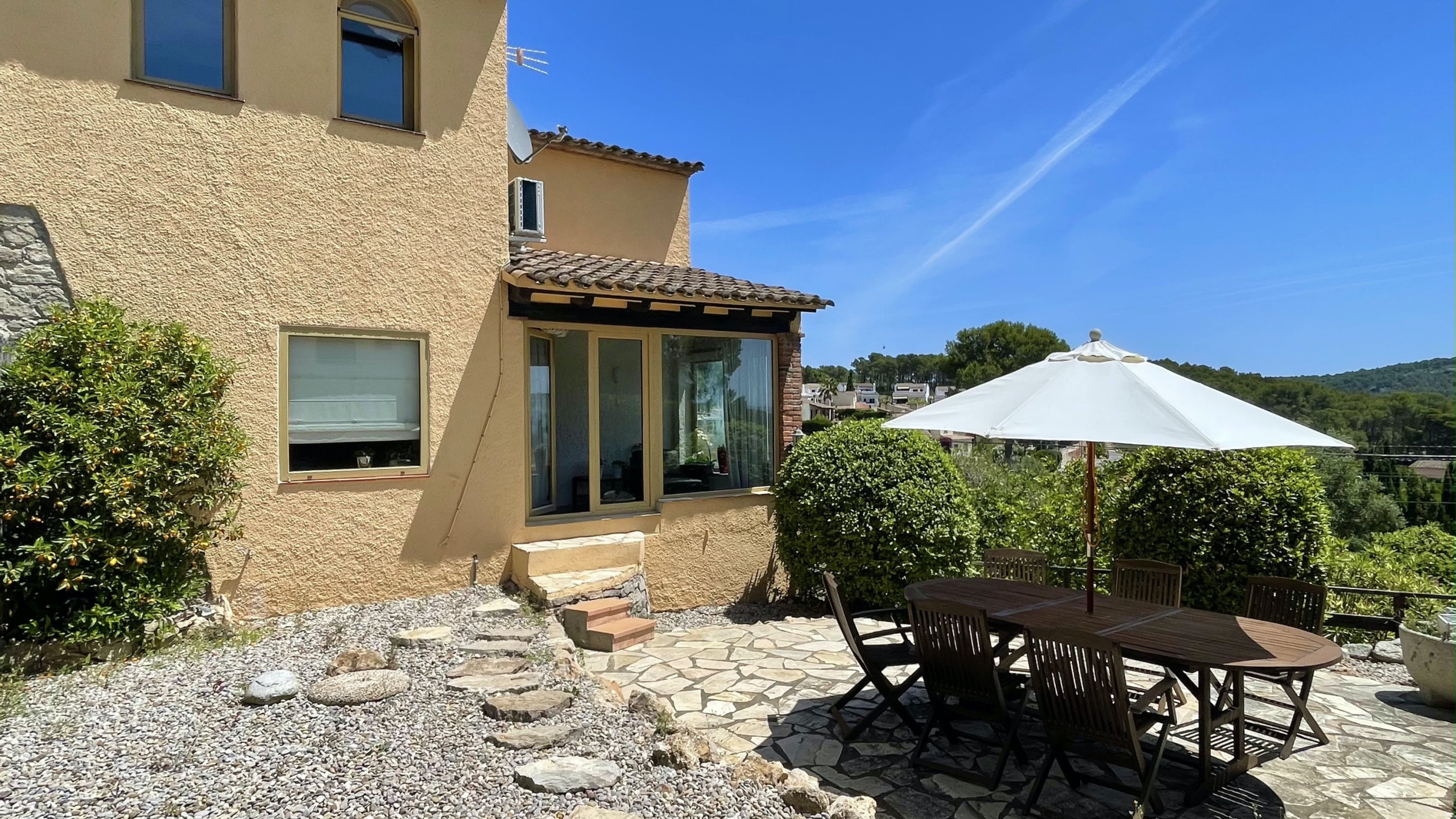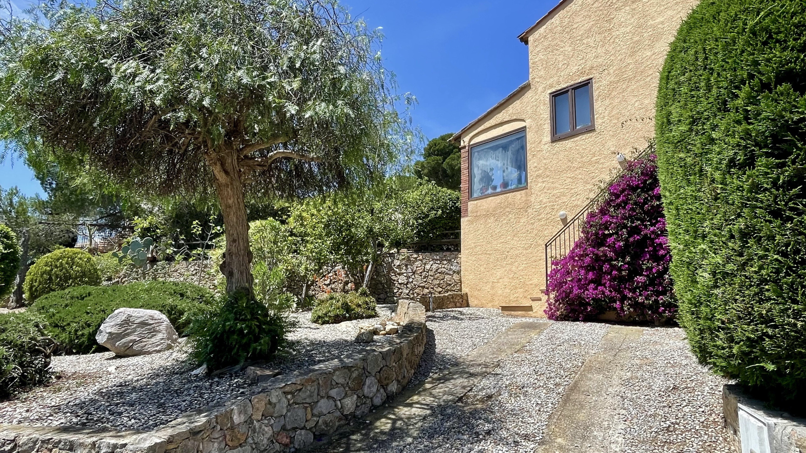 L'extérieur de la maison comprend une grande terrasse idéale pour les repas en plein air, un magnifique jardin méditerranéen propice à la détente, du mobilier de jardin et un terrain clôturé offrant intimité et sécurité. Un parking extérieur est également disponible sur place. Pour votre confort, la maison est équipée d'un lave-linge, d'un fer à repasser et d'une télévision.