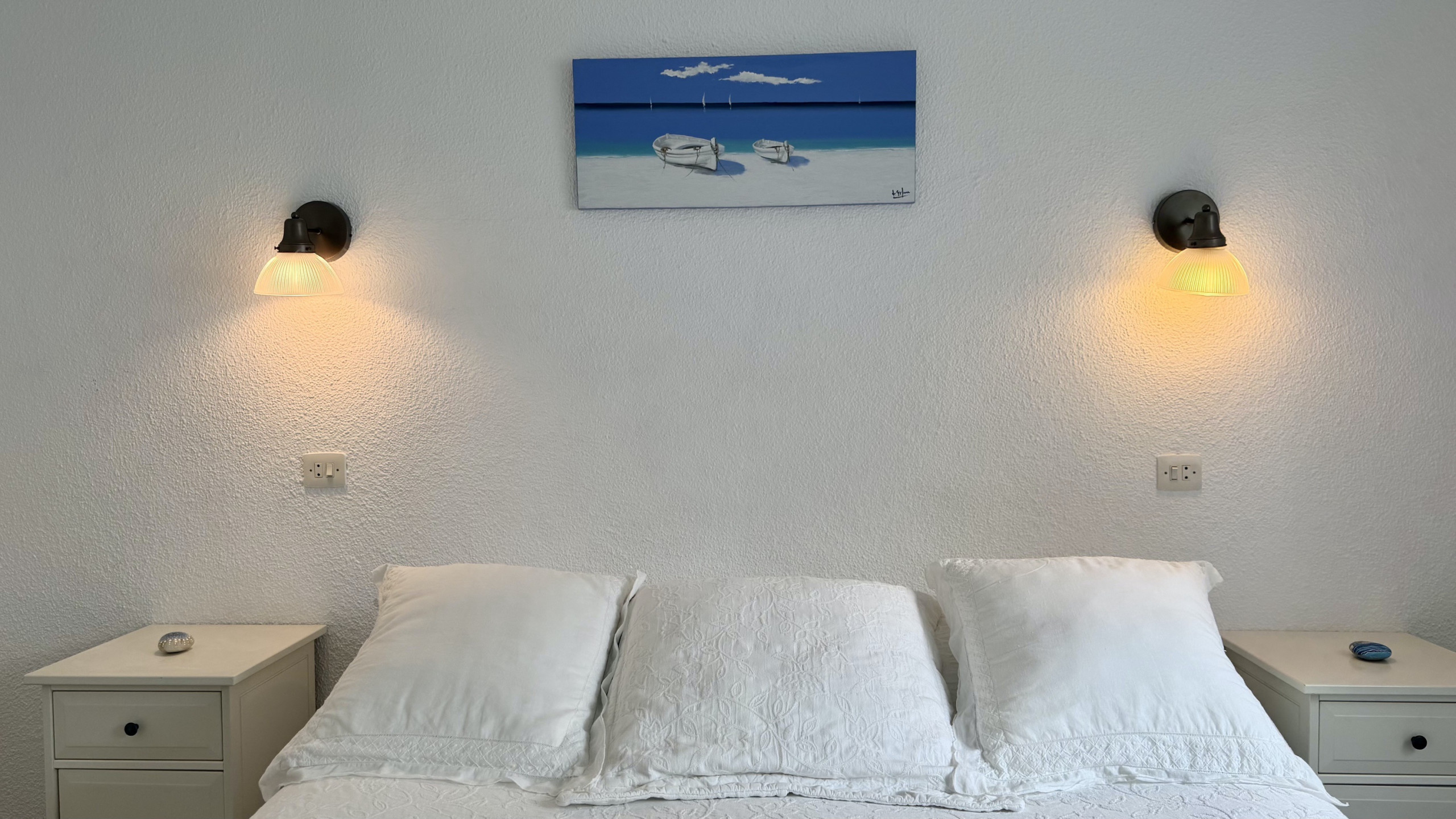 L'appartement dispose de deux chambres bien équipées : l'une avec un lit double, l'autre avec des lits superposés et un canapé-lit supplémentaire, garantissant un repos confortable à tous les clients. Elle dispose d'une salle de bain individuelle avec baignoire, idéale pour se détendre après une journée à la plage.