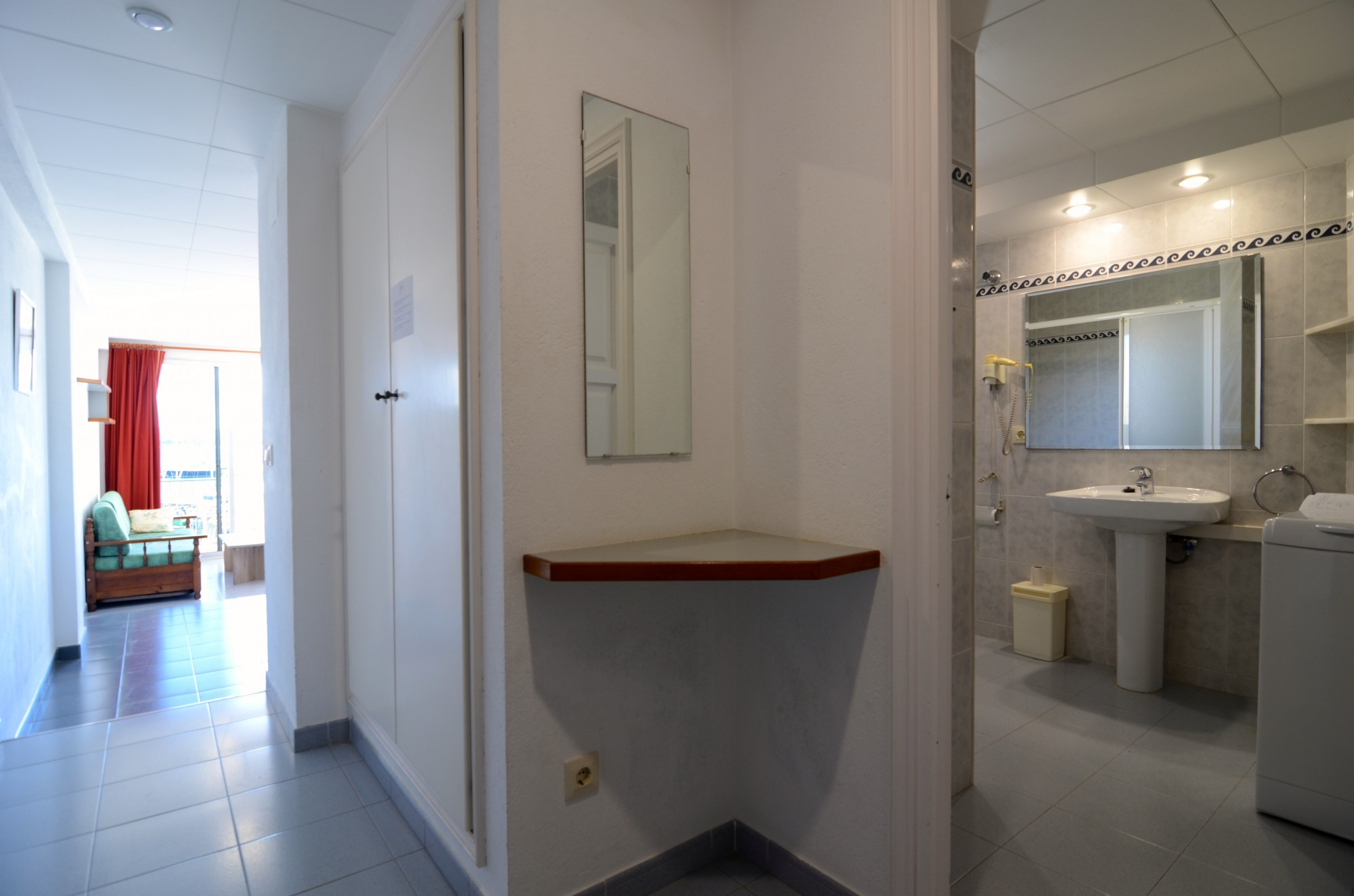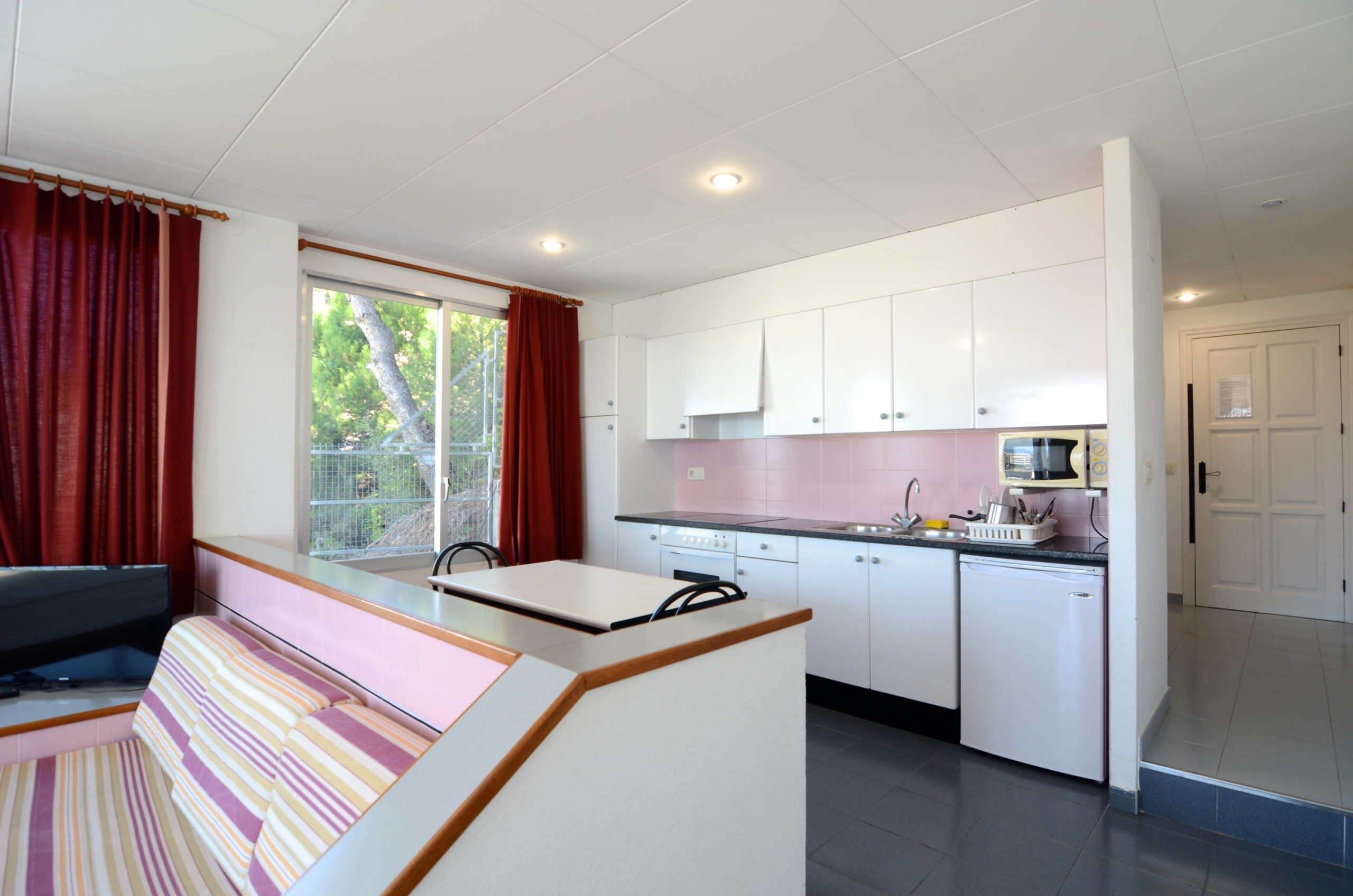 Le studio est bien aménagé avec ascenseur, terrasse meublée, piscine commune + enfants entourée d'un jardin verdoyant, télévision et accès Internet selon disponibilité (10 €/jour).