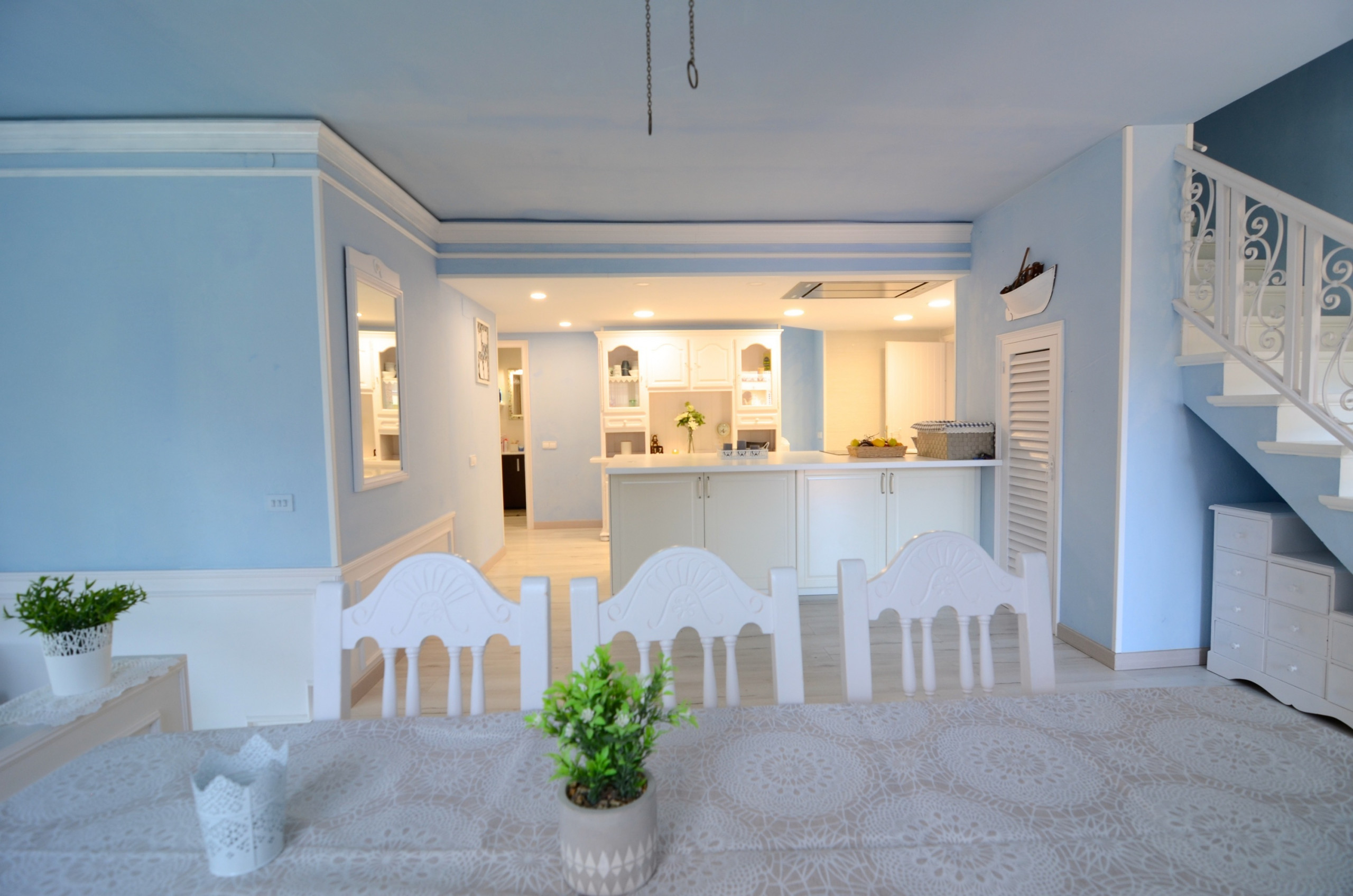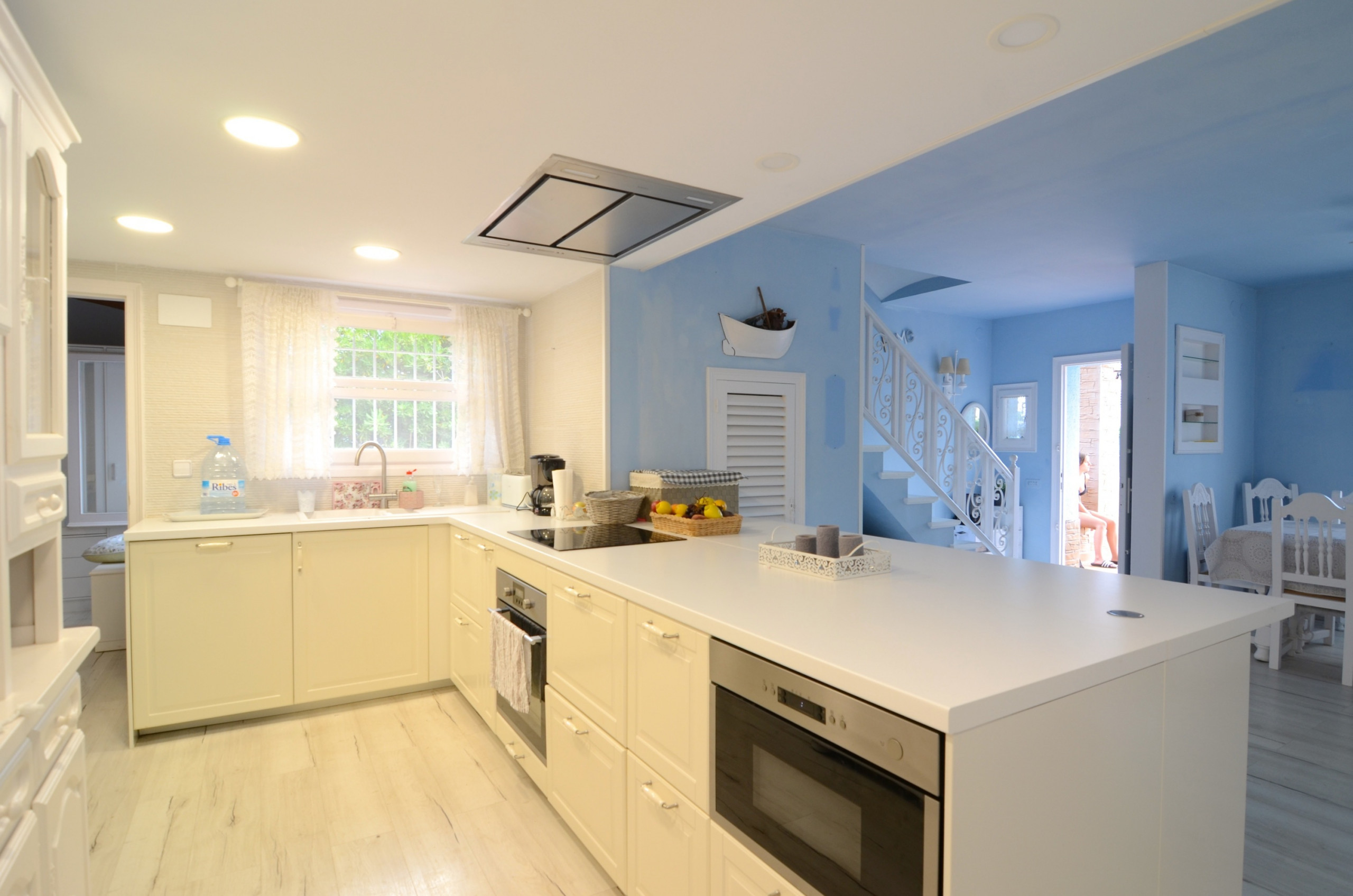 L'intérieur est tout aussi impressionnant : un immense salon-salle à manger, une cuisine ouverte et une buanderie, 4 chambres avec lits doubles, 1 chambre avec 2 lits simples et 3 salles de bains avec douches.