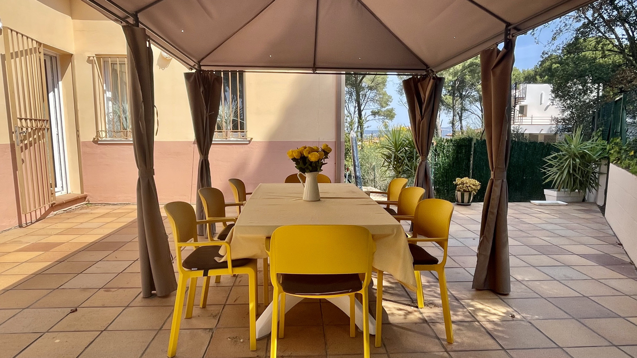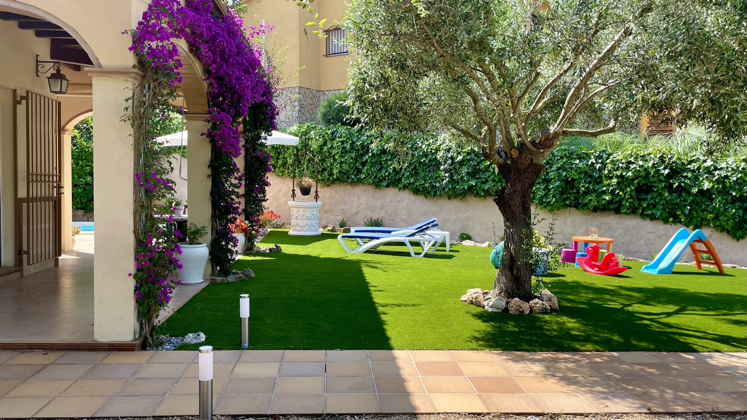 Plongez-vous dans la fraîcheur de votre propre piscine privée, où vous pourrez profiter de moments de plaisir sous le chaud soleil. Le jardin luxuriant qui entoure la propriété crée une atmosphère tranquille et relaxante, idéale pour des repas en plein air ou simplement pour se détendre au milieu de la nature.